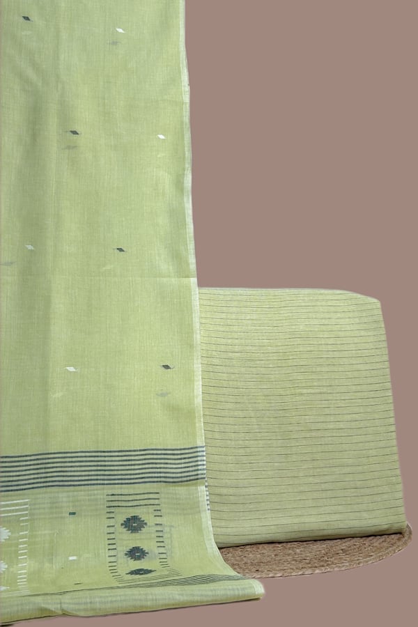 Green – 2pc Handloom Cotton Dupatta and Handloom Woven Stripes Cotton Top Fabric Set