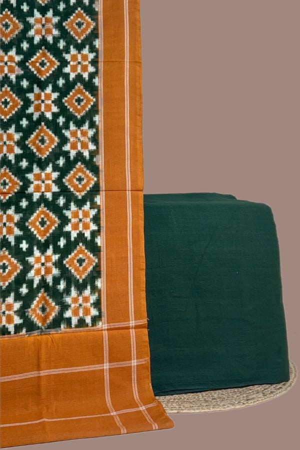 Green – 2pc Ikkat Cotton Dupatta and Handloom Soft Cotton Top Fabric Set