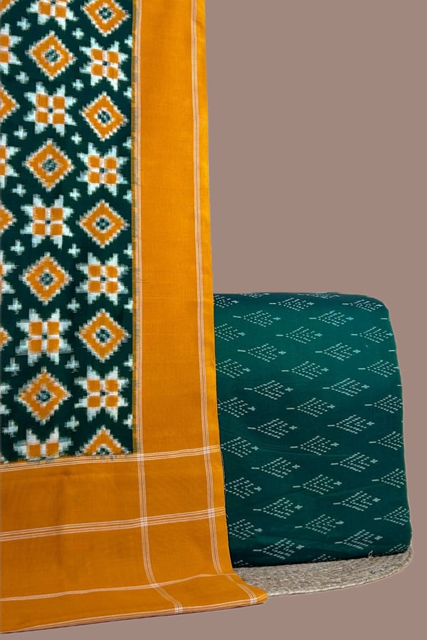 Green – 2pc Ikkat Cotton Dupatta and Handloom Soft Ikkat Cotton Top Fabric Set