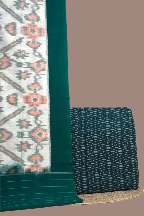 Green – 2pc Ikkat Cotton Dupatta and Handloom Soft Ikkat Cotton Top Fabric Set