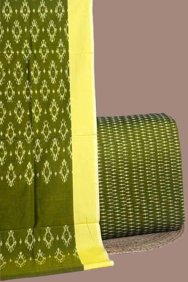 Green – 2pc Ikkat Cotton Dupatta and Handloom Soft Ikkat Cotton Top Fabric Set
