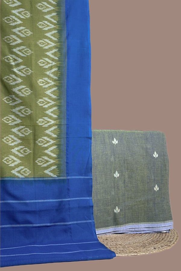 2.5mtr Each – Ikkat Cotton Dupatta with Handloom Woven Motif Cotton Top Fabric Set