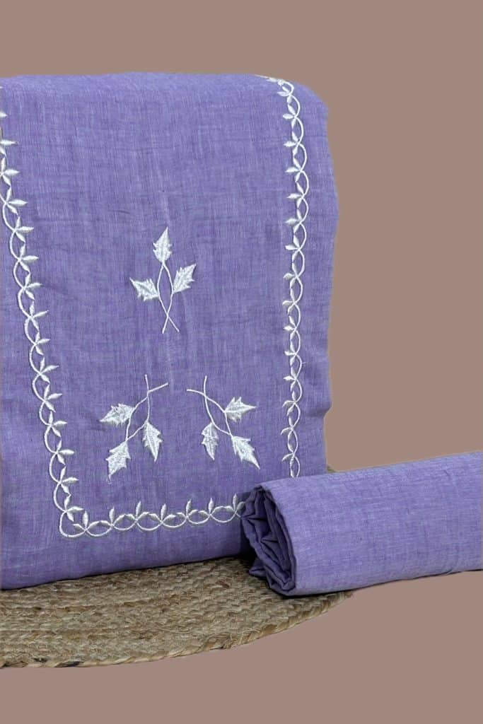 2Pc Handloom Embroidered Neck Design Soft Cotton Top(3m) Bottom(2.5m) Fabric Set