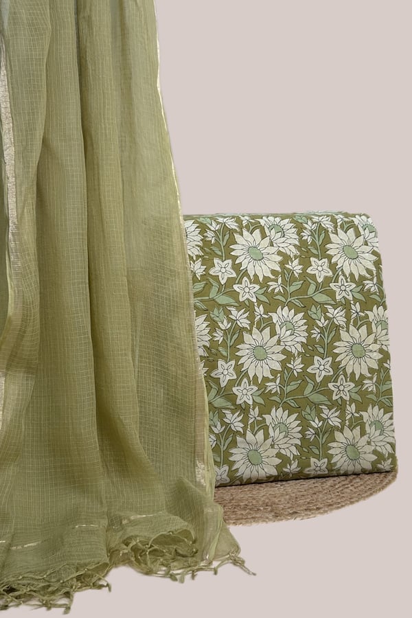 Green – 2pc Kota Doria Dupatta and Bagru HandBlock Pure Cotton Set