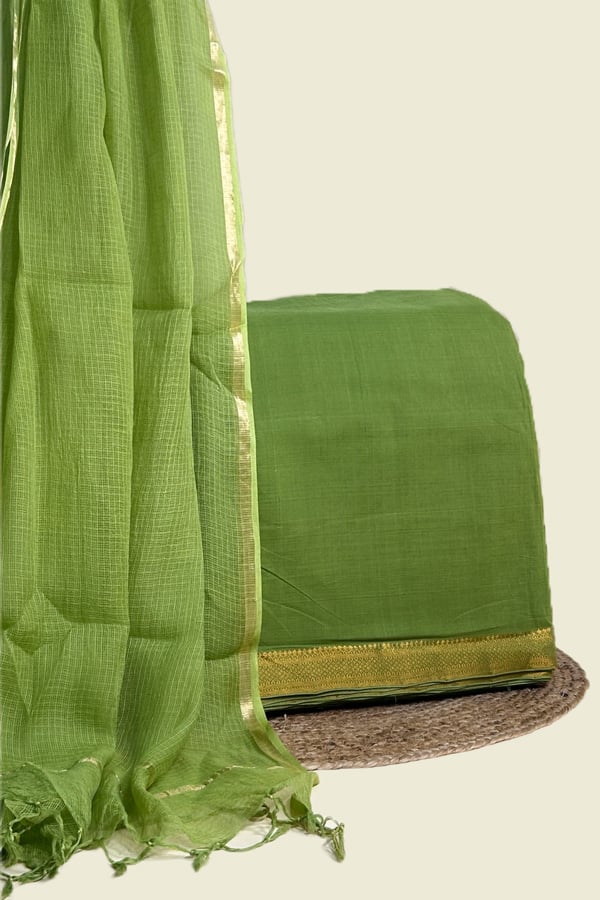 Green – 2pc Kota Doria Dupatta and Mangalgiri Zari Border Handwoven Pure Cotton Set