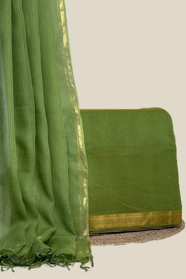 Green – 2pc Kota Doria Dupatta and Mangalgiri Zari Border Handwoven Pure Cotton Set