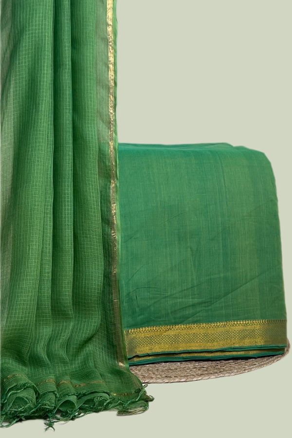 Green – 2pc Kota Doria Dupatta and Mangalgiri Zari Border Handwoven Pure Cotton Set
