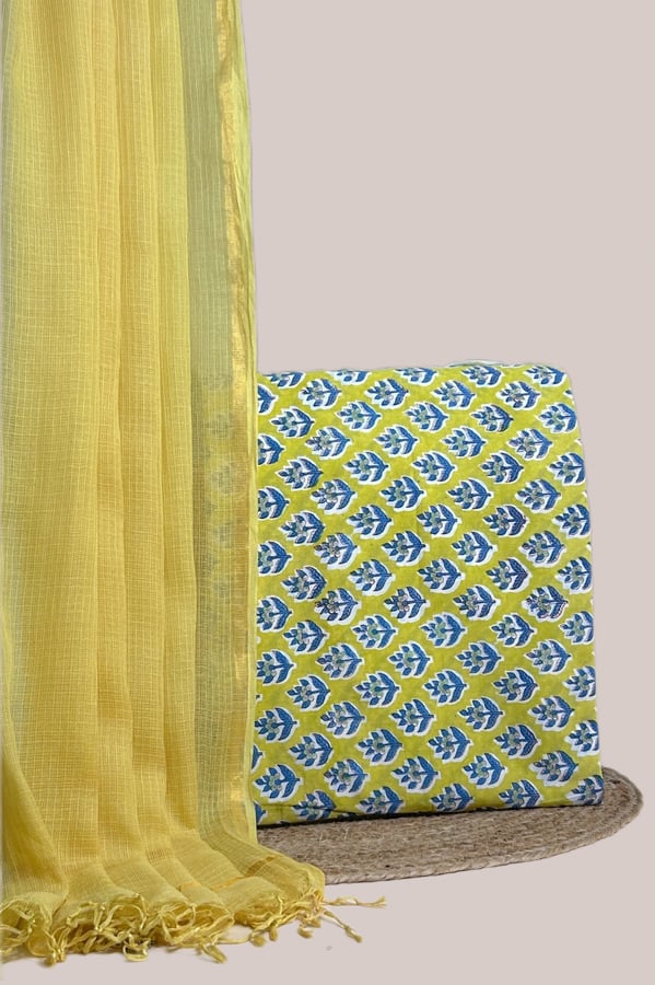 2.5mtr Each – Kota Doria Dupatta with HandBlock Printed Pure Soft Cotton Top Fabric Set