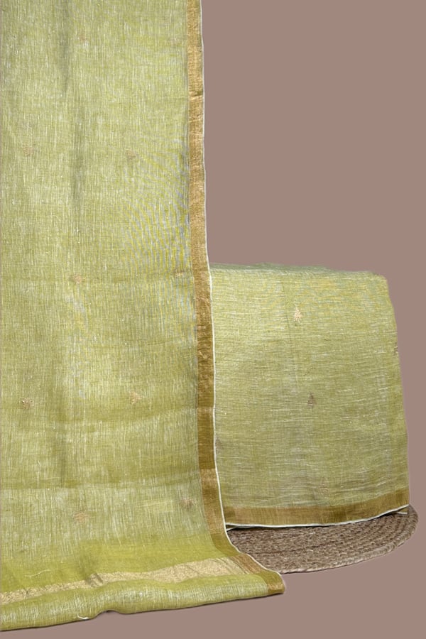 Green – 2pc Premium Linen Handloom Dupatta and Handloom Woven Motif Flowy Soft Cotton Top Fabric Set