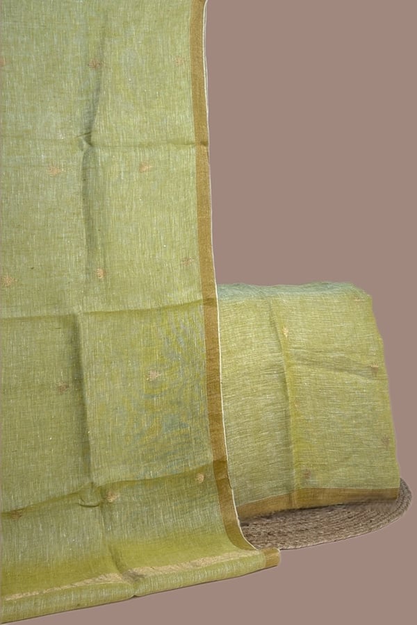 Green – 2pc Premium Linen Handloom Dupatta and Pure Handloom Linen Top Fabric Set