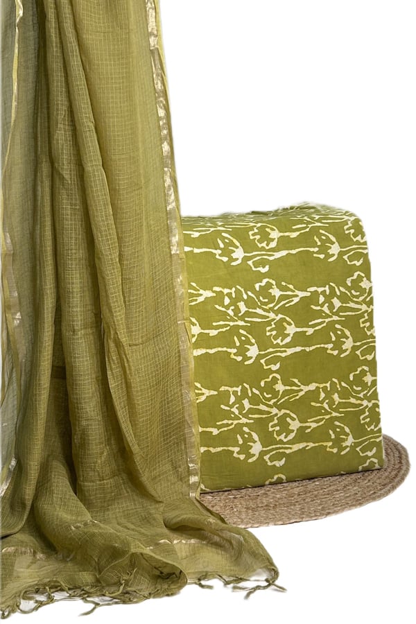 Green – 2pc Set Kota Doria Dupatta and Bagru Top HandBlock Printed Pure Cotton Set