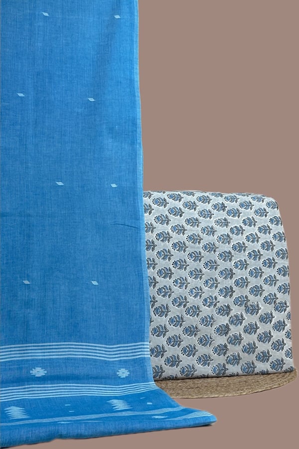 2.5mtr Each – Handloom Cotton Dupatta with HandBlock Printed Pure Soft Cotton Top Fabric Set