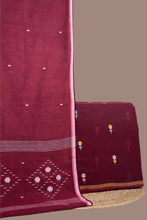 Maroon – 2pc Handloom Cotton Dupatta and Handloom Woven Design Top Fabric Set