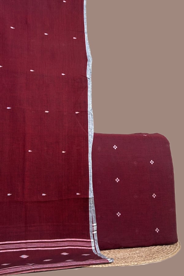 Maroon – 2pc Handloom Cotton Dupatta and Handloom Woven Design Top Fabric Set