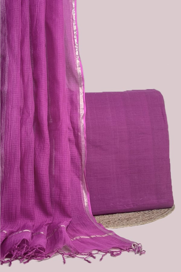 2.5mtr Each – Kota Doria Dupatta with Mangalgiri Zari Border Handwoven Cotton Top Fabric Set