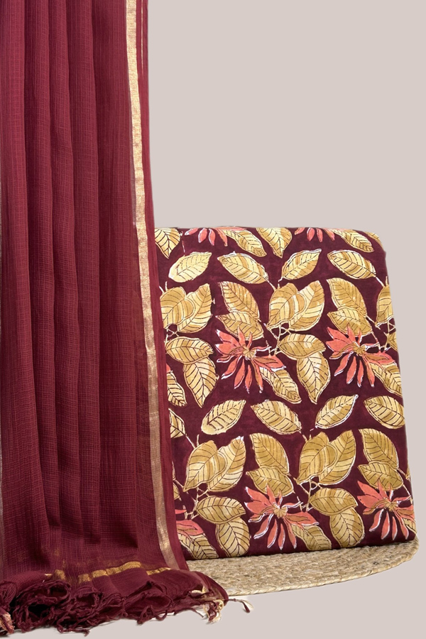 Maroon – 2pc Kota Doria Dupatta and Pure Soft Cotton Blockprint Top Fabric Set