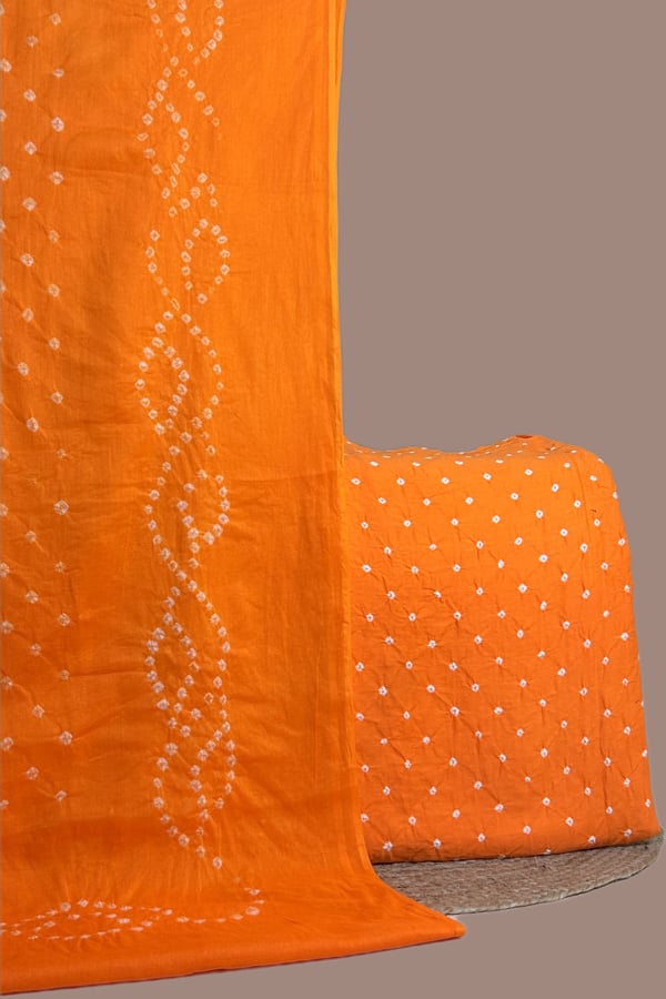 Orange – 2pc Bandhani Cotton Dupatta with Cotton Bandhani Top Fabric Set