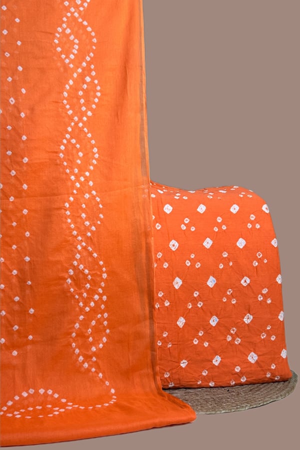 Orange – 2pc Bandhani Cotton Dupatta with Cotton Bandhani Top Fabric Set