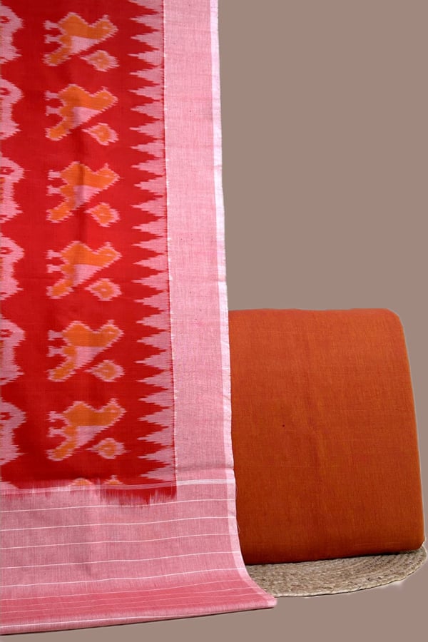 Orange – 2pc Ikkat Cotton Dupatta and Handloom Soft Cotton Top Fabric Set
