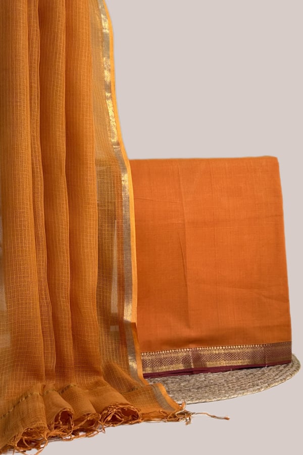 Orange – 2pc Kota Doria Dupatta and Mangalgiri Zari Border Handwoven Pure Cotton Set