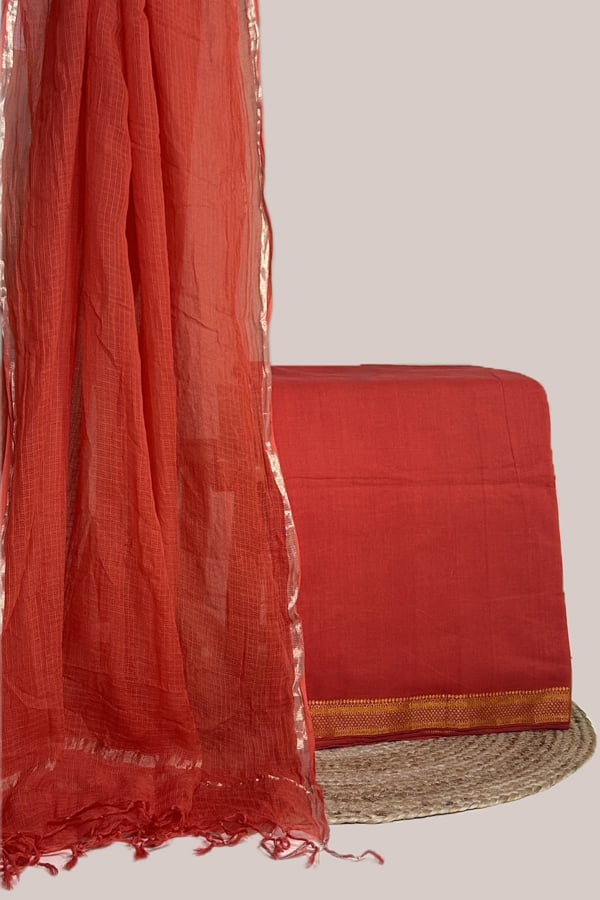 Orange – 2pc Kota Doria Dupatta and Mangalgiri Zari Border Handwoven Pure Cotton Set