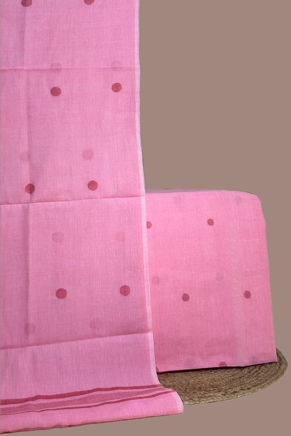 Pink – 2pc (3mtr Top) Handloom Cotton Dupatta and Handloom Woven Design Top Fabric Set