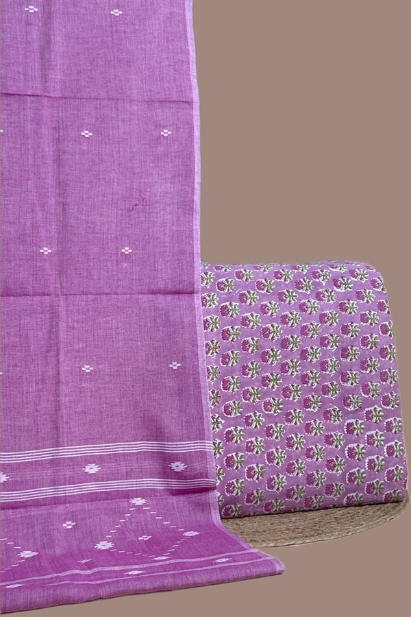 2.5mtr Each – Handloom Cotton Dupatta with HandBlock Printed Pure Soft Cotton Top Fabric Set