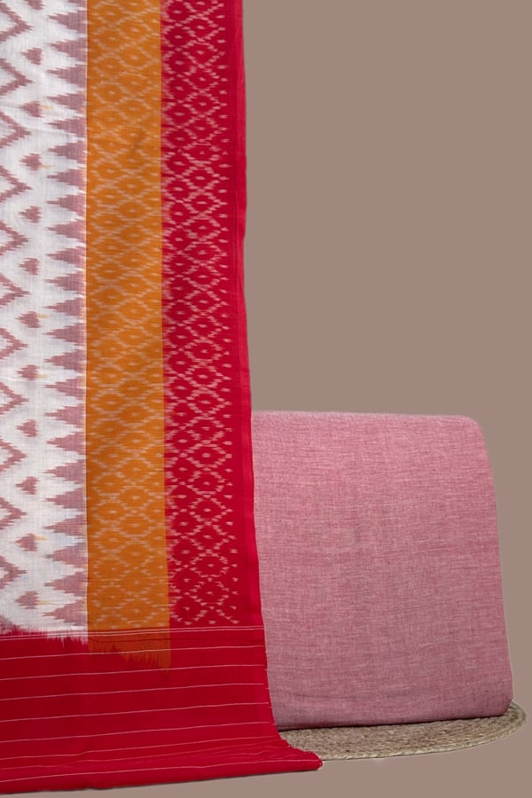 Pink – 2pc Ikkat Cotton Dupatta and Handloom Soft Cotton Top Fabric Set