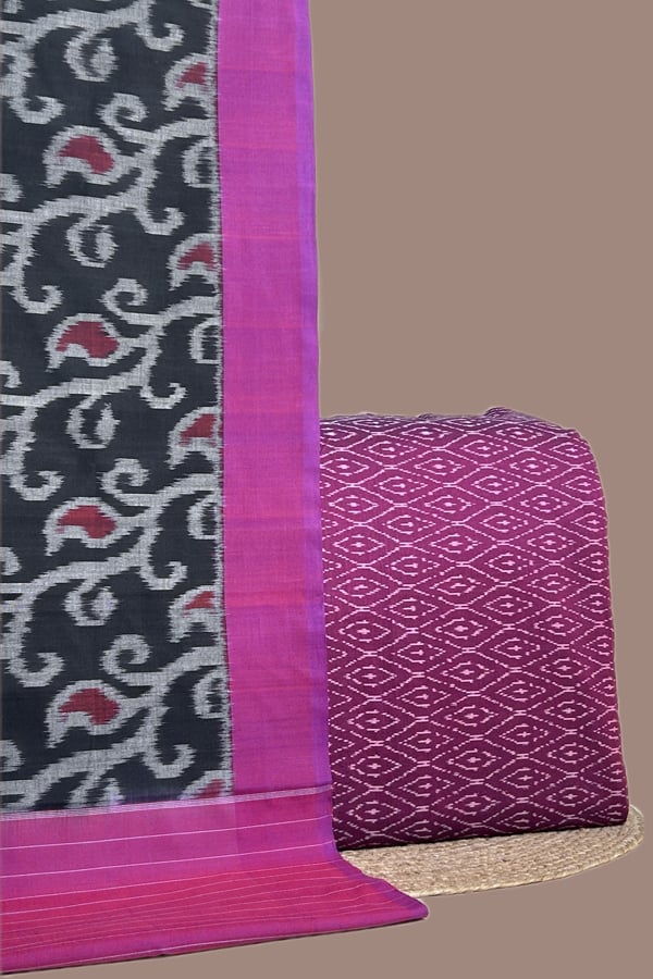 Pink – 2pc Ikkat Cotton Dupatta and Handloom Soft Ikkat Cotton Top Fabric Set