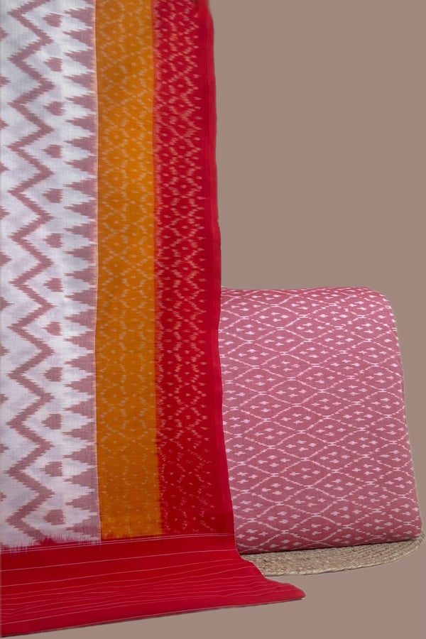 Pink – 2pc Ikkat Cotton Dupatta and Handloom Soft Ikkat Cotton Top Fabric Set