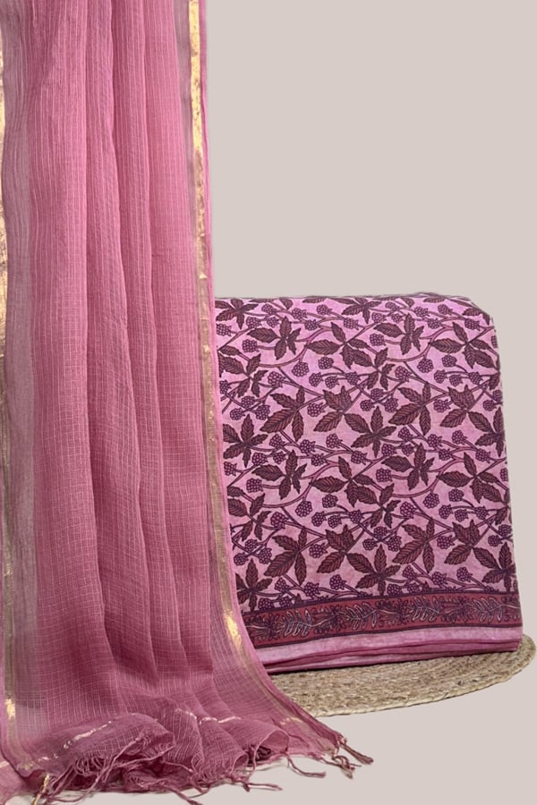 Pink – 2pc Kota Doria Dupatta and Bagru HandBlock Pure Cotton Set