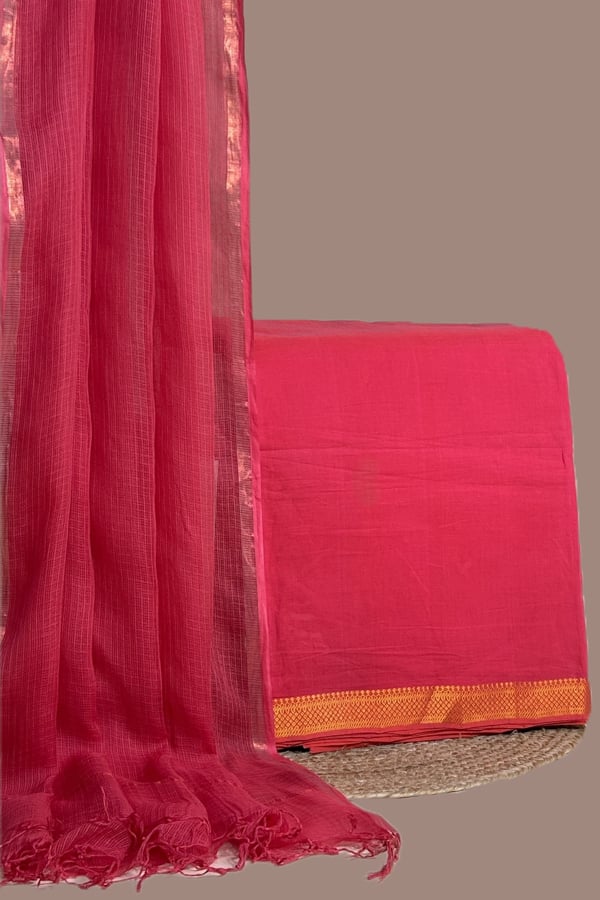 Pink – 2pc Kota Doria Dupatta and Mangalgiri Zari Border Handwoven Pure Cotton Set