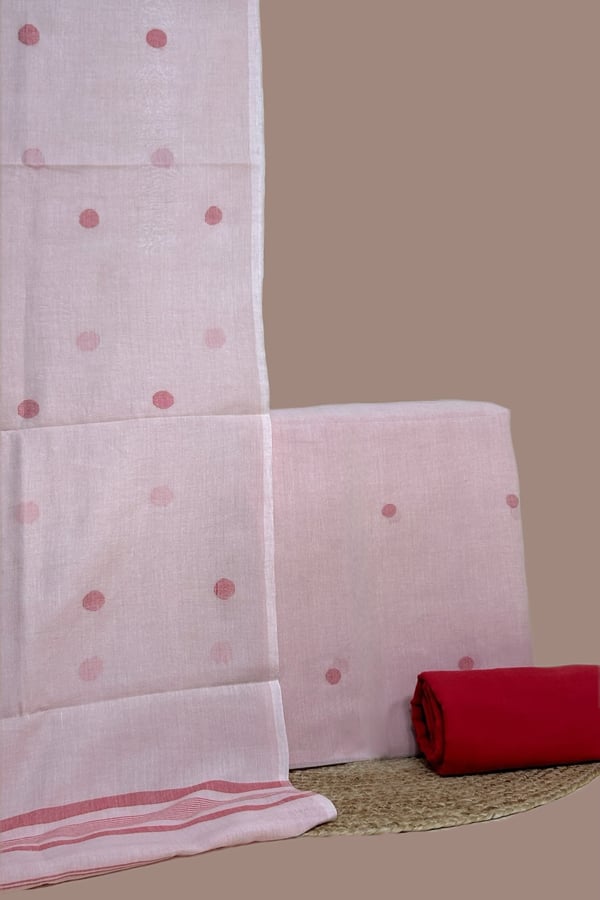Pink – 3Pc (3mtr Top) Handloom Cotton Dupatta with Woven Motif Top & Handloom Soft Cotton Bottom Fabric Set