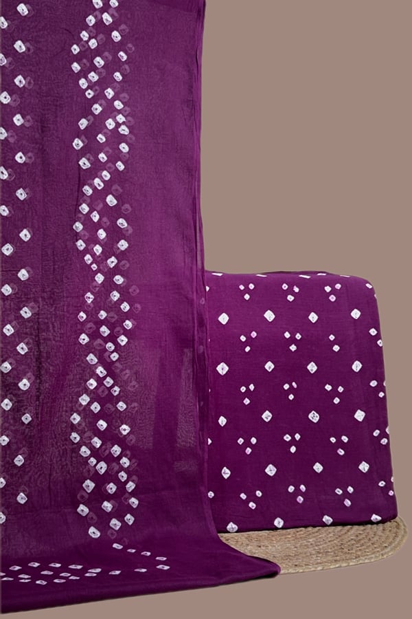 Purple – 2pc Bandhani Cotton Dupatta with Cotton Bandhani Top Fabric Set
