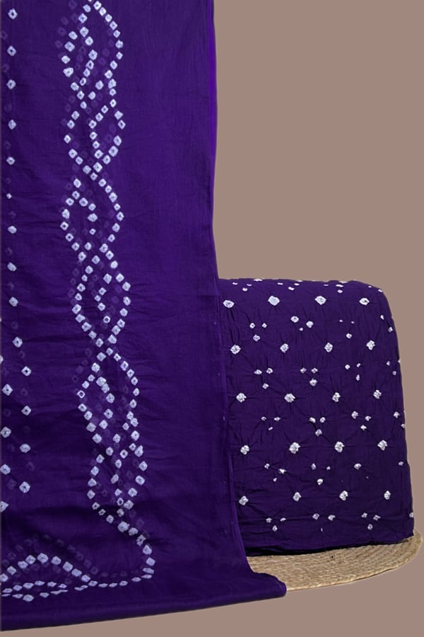 Purple – 2pc Bandhani Cotton Dupatta with Cotton Bandhani Top Fabric Set