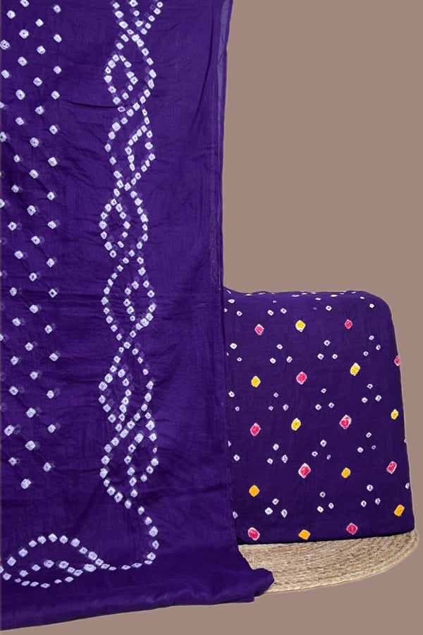 Purple – 2pc Bandhani Cotton Dupatta with Cotton Bandhani Top Fabric Set