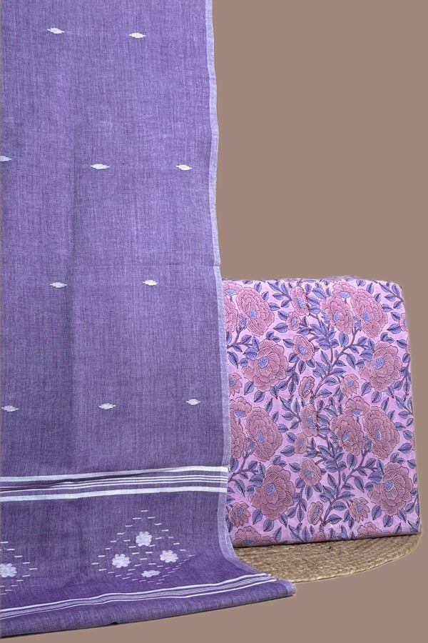 Purple – 2pc Handloom Cotton Dupatta and Blockprinted Soft Cotton Top Set