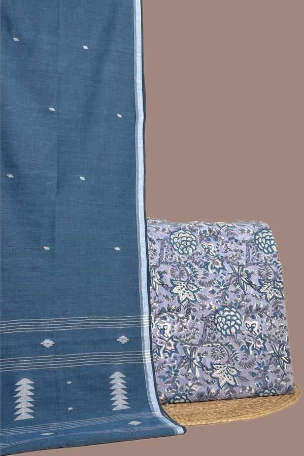 2.5mtr Each – Handloom Cotton Dupatta with HandBlock Printed Pure Soft Cotton Top Fabric Set