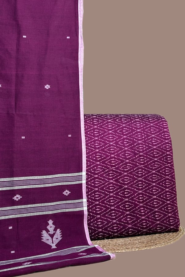 Purple – 2pc Handloom Cotton Dupatta and Handloom Ikkat Top Fabric Set