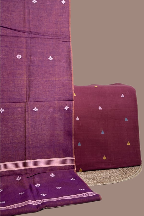 Purple – 2pc Handloom Cotton Dupatta and Handloom Woven Design Top Fabric Set