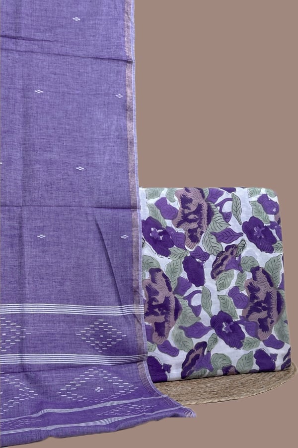 2.5mtr Each – Handloom Cotton Dupatta with HandBlock Printed Pure Soft Cotton Top Fabric Set