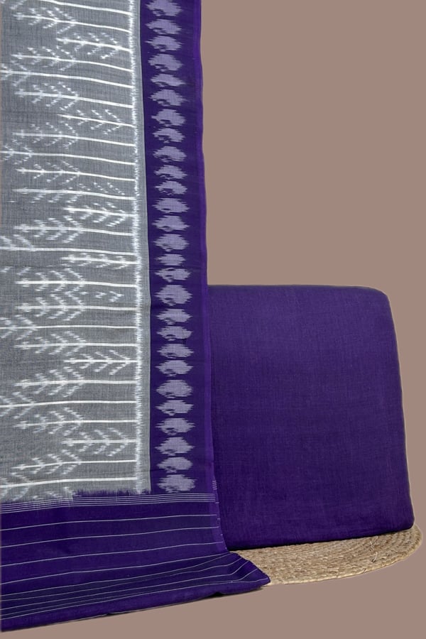 Purple – 2pc Ikkat Cotton Dupatta and Handloom Soft Cotton Top Fabric Set
