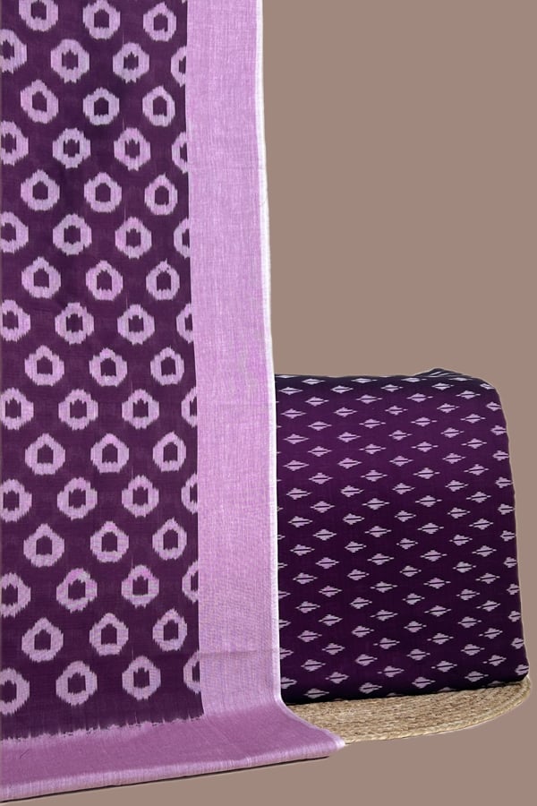 Purple – 2pc Ikkat Cotton Dupatta and Handloom Soft Ikkat Cotton Top Fabric Set