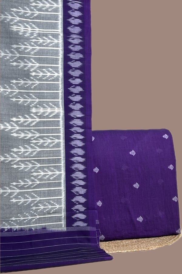 Purple – 2pc Ikkat Cotton Dupatta and Handloom Woven Motif Cotton Top Fabric Set