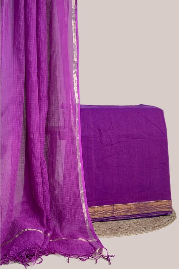 Purple – 2pc Kota Doria Dupatta and Mangalgiri Zari Border Handwoven Pure Cotton Set