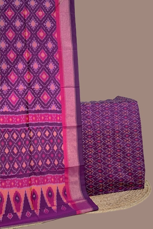 Purple – 2pc Premium Silk-Cotton Ikkat Dupatta and Soft Ikkat Cotton Silk Top Fabric Set
