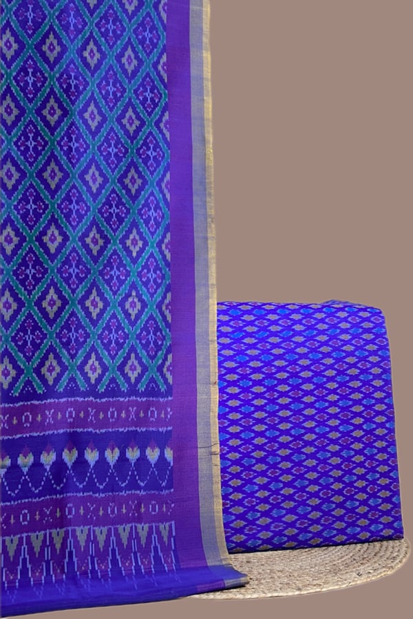 Purple – 2pc Premium Silk-Cotton Ikkat Dupatta and Soft Ikkat Cotton Silk Top Fabric Set