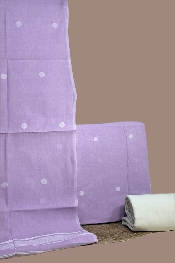 Purple – 3Pc (3mtr Top) Handloom Cotton Dupatta with Woven Motif Top & Handloom Soft Cotton Bottom Fabric Set