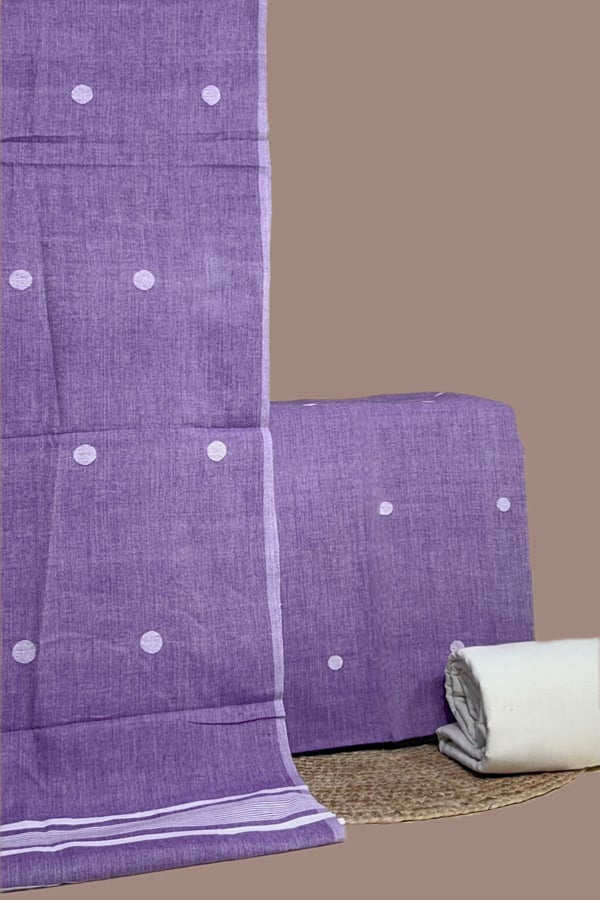 Purple – 3Pc (3mtr Top) Handloom Cotton Dupatta with Woven Motif Top & Handloom Soft Cotton Bottom Fabric Set