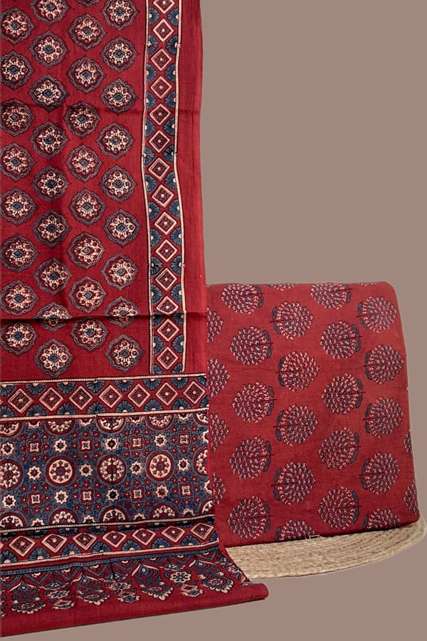Red – 2pc Ajrakh HandCrafted Cotton Dupatta and Top Cotton Fabric Set